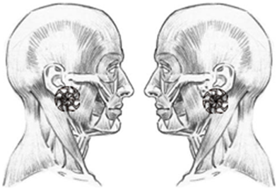 Obydwa środki znajdują się przed uszami, w miejscu styku szczęk;