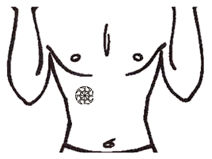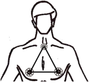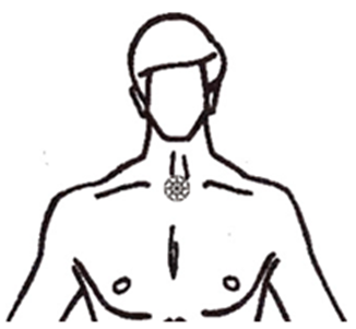 Jeden na styku kości piersiowych: w pobliżu tarczycy. Razem z dwoma ośrodkami klatki piersiowej tworzy trójkąt sił.