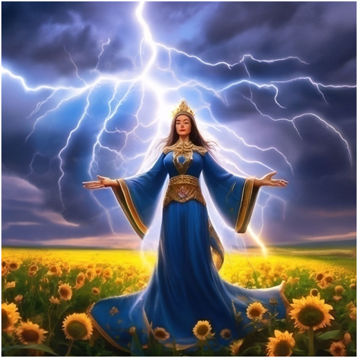 BOGINI DIVA-DODOLA (Perunitsa) – Niebiańska Bogini obfitej Płodności, która kontroluje deszcz, burze i błyskawice; żona i pomocnica Najwyższego Boga Peruna .