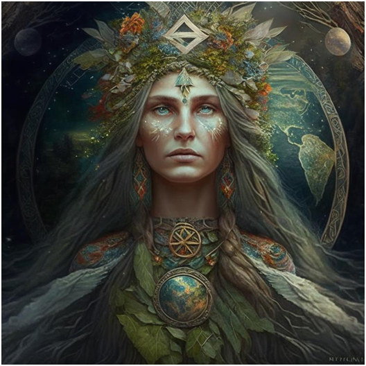 MATKA SUROWA ZIEMIA – Niebiańska Bogini-Patronka Midgardu-Ziemi. Bogini ziemskiej płodności i bogatych, obfitych zbiorów. Przed zasiewem wszystkie rodziny słowiańskie i aryjskie przyniosły Bogini bogate dary i potrzeby.