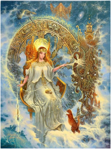 Dola BOGINI LOSU (Srecha) – Niebiańska Bogini szczęśliwego losu, szczęścia i powodzenia w życiu i działalności twórczej. To wiecznie piękny, młody Niebiański kołowrotek, który kręci cudowną nić ludzkiego życia.