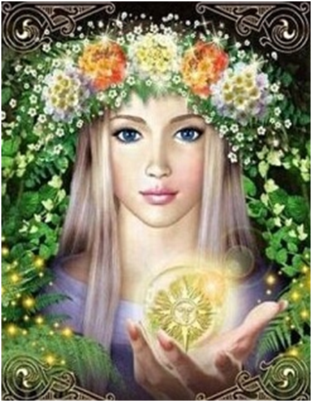 BOGINI TARA (Taryna, Taya, Tabyti) Słowiańska bogini jest uważana za siostrę bliźniaczkę Dazhboga, zwanego czasami Tarkh Perunovich. Podobnie jak bliźniacy Khors i Divya, którzy pojawiają się w postaci przeciwnych zjawisk (Słońce i Księżyc), tak Dazhdbog i Tara pojawiają się o różnych porach dnia: Dazhdbog posiada odbite światło słoneczne, a Tara pojawia się w nocy jako prowadząca Gwiazda Polarna. Bogini Tara była czczona jako patronka podróżników, otwierająca drogi i pomagająca wybrać kierunek. Ponieważ drogi podróżników mogą przebiegać przez lasy, jednocześnie Bogini Tara była uważana za patronkę świętych lasów dębowych.