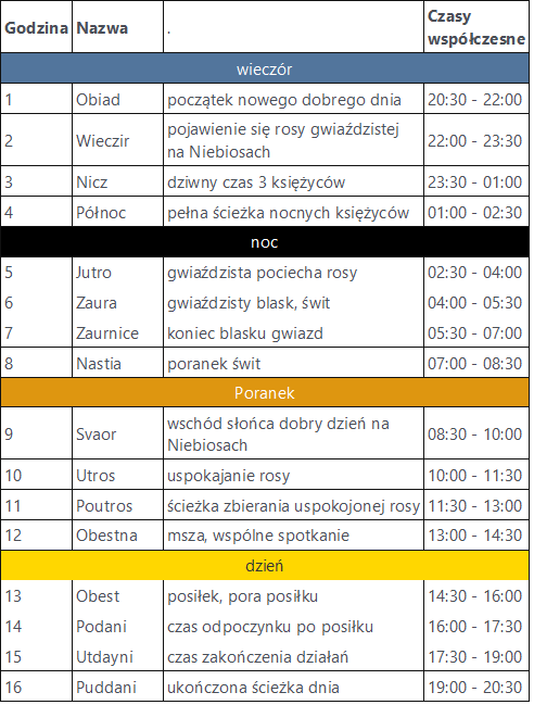 I nie ma czegoś takiego jak „ zero czasu ” (0 godzin), tj. Powiedzieli, że 16 godzin 143 części, a 144 części to już pierwsza godzina. Poza tym każda godzina miała swoją nazwę.