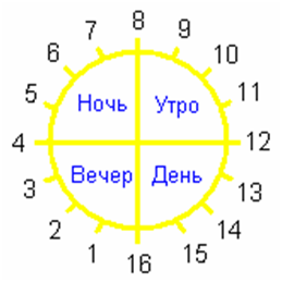 Zauważ, że kiedy mija czwarta część Kręgu Czasu (od 12 do 16), mówimy: „ dzień minął ”. Albo inne przysłowie: „ Poranek jest mądrzejszy od wieczora ” – bo 3/4 dnia to znacznie więcej niż jedna czwarta.