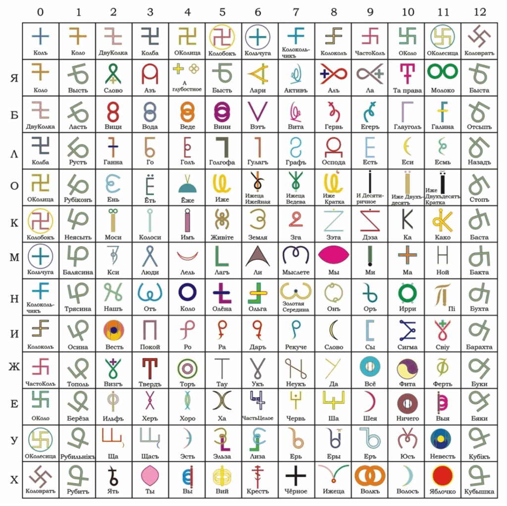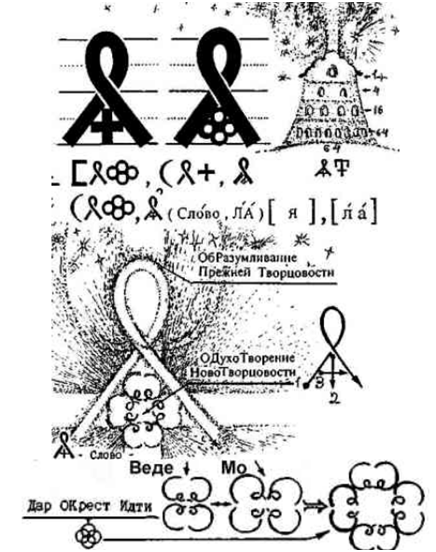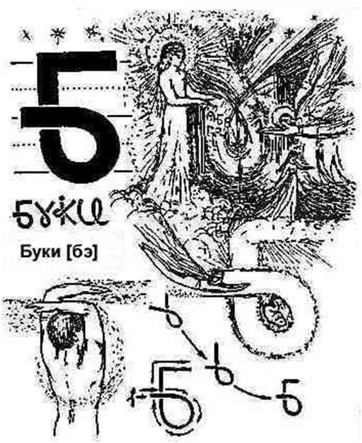 Dekodując słowa za pomocą znaków VG, należy pamiętać o prawach budowy dowolnego kwantu informacji . Nazwałbym je PISownią umiejętności czytania i pisania Wszechświatła Gramoty. Litery Wszechświatła Gramoty są WIELOWYMIAROWE, tzn. odzwierciedlają ruch „myśli Pana w przestrzeni” z RÓŻNYCH PUNKTÓW ODBIORU INFORMACJI O WSZECHŚWIECIE. Każda litera spełniała nie tylko funkcję pisma, oznaczenia, symbolu, ale miała również zadanie POZNAWCZE, co umożliwiało POWIĄZANIE TRENINGU Z PROCESEM EDUKACYJNYM. Każda rosyjska Bukowa, oprócz funkcji symbolicznej i poznawczej, spełniała określone ZADANIE MORALNE W PRZEKAZYWANIU Z POKOLENIA NA POKOLENIE PRZYKAZAŃ RODZINY, PLEMIENIA. Większość pojęć literowych została przekreślona i zapomniana.