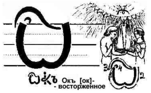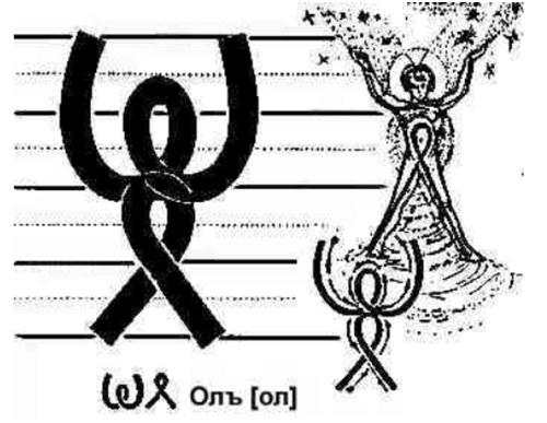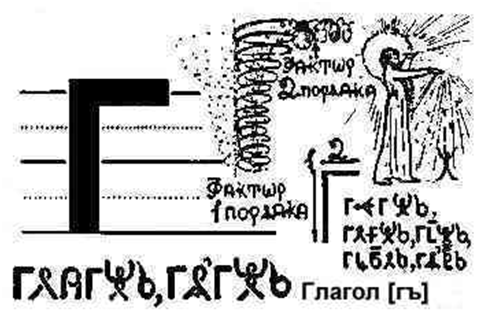 A G jest tym samym wzmacniaczem hartu ducha. I jeszcze jedno – na końcu słowa GLAGOL znajduje się szczególnie interesująca litera OL (o tym później). A teraz powiem tylko, że oznacza ludzi, którzy wznieśli ideę zjednoczenia na wyżyny braterstwa. I wtedy ostateczna wersja znaczenia litery