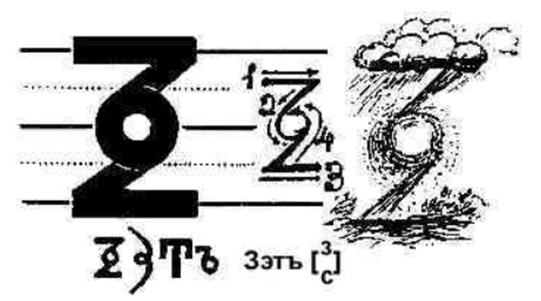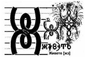 Букова Живете –Życie „Ж”- Żywite- Ż – Gwiazda, siejąca życie, zmieniająca się. Jedność Niebiańskiej Myśli na Ziemi, Wzniosłe Budowanie Życia na Niebiańsku, które przybyło do Nowego Firmamentu. Litera ta jest dwukrotnie wyższa od pozostałych, ponieważ górna część jest napisana nad linią KOSM-NAV, a przepływ EI przemieszcza się nad Duchem – w Boskich sferach, gdzie nie ma już energii, a jedynie informacja.