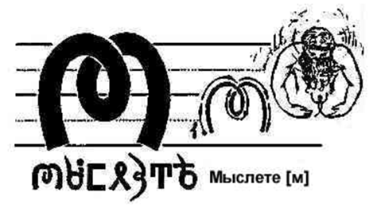 „Myslete” – My, ze Słowem (-C) Ludzkiego Zachowania (-LEt ), Mowa Wzniesienia Słońca-Rechenki (-E). Strumień EI wznosi się z przeszłości płynnie na wyżyny duchowe, po delikatnym wykonaniu pracy na płaszczyznach duchowych,