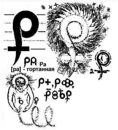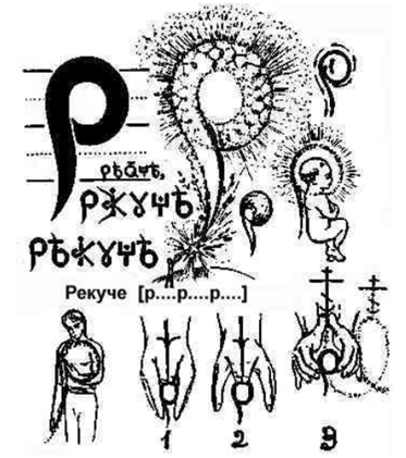 „Ro” – Bukova ZhizneStroeVozdvignoveniya. Dziecko wznosi się do nowo stworzonego kosmosu przy wsparciu nowo stworzonego firmamentu poprzez pierwiastek żeńsko-macierzyński i poprzez odniesienie mocy zasady męsko-ojcowskiej.