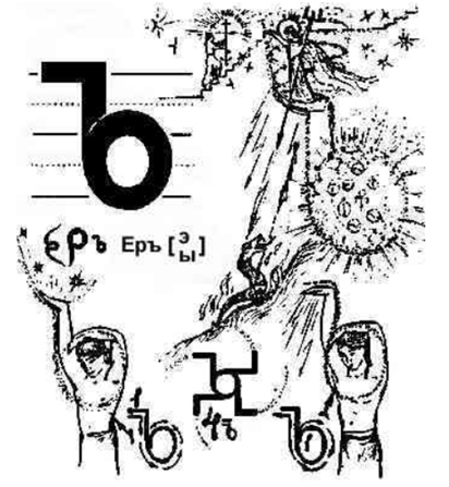 „Ё”-Ёкъ„Yo” – Yok, Ir – To jest Jedność DNA (czynnika) i całego otaczającego świata. „Serce zabiło” – oznacza to, że Człowiek zwrócił się do Całego Świata Informacji i dzięki Koncentratom Początków Życia zrozumiał, co należy w tej chwili zrobić.